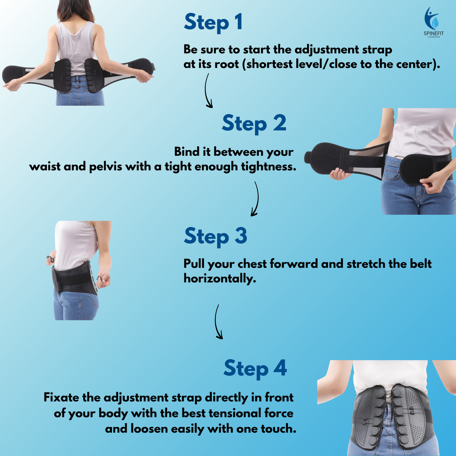 Just follow 4 simple steps and you're good to go. No guessing, no hassle – SpineFit is super easy to put on and adjust.