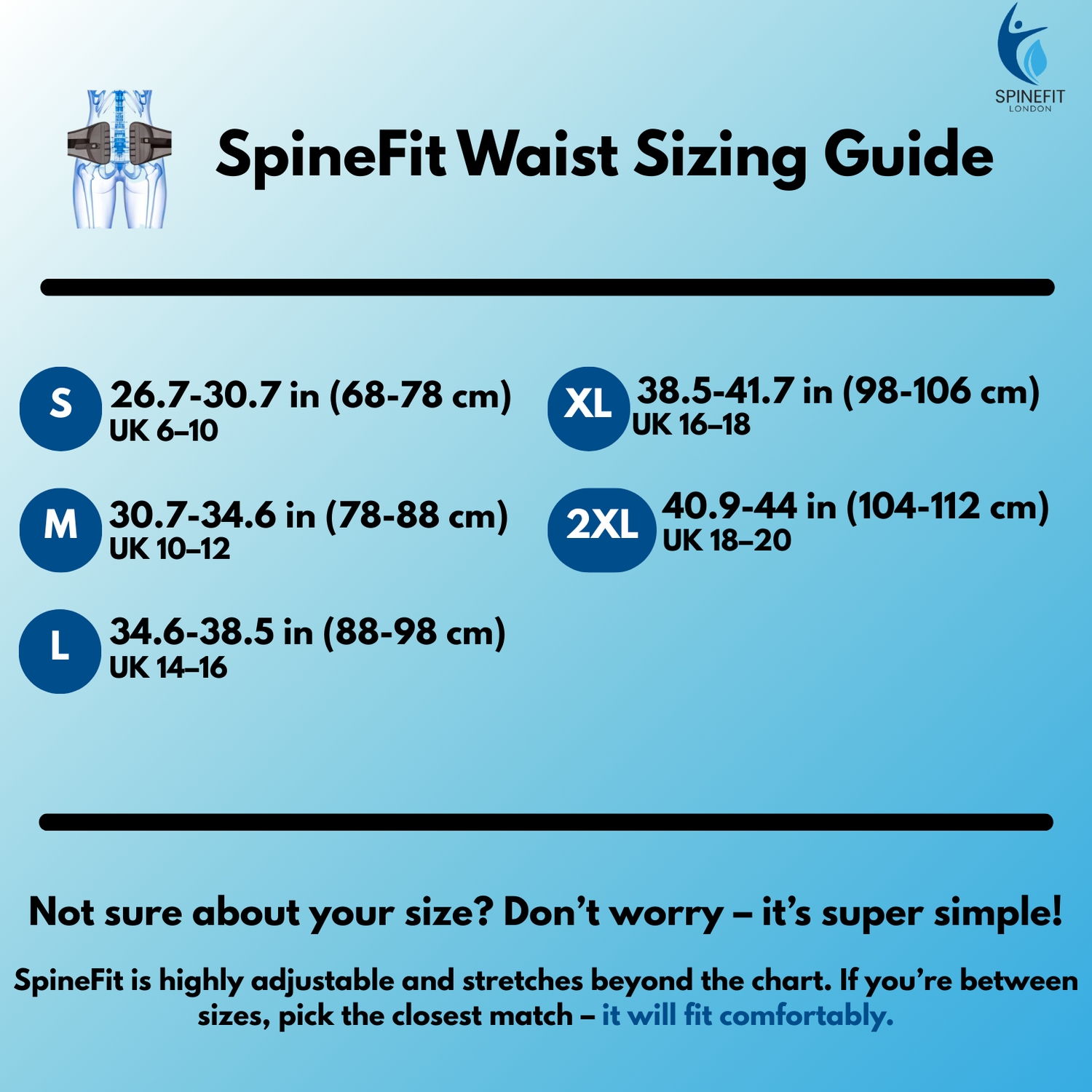 • Don’t worry: SpineFit stretches beyond the chart and feels comfortable in every size ✅